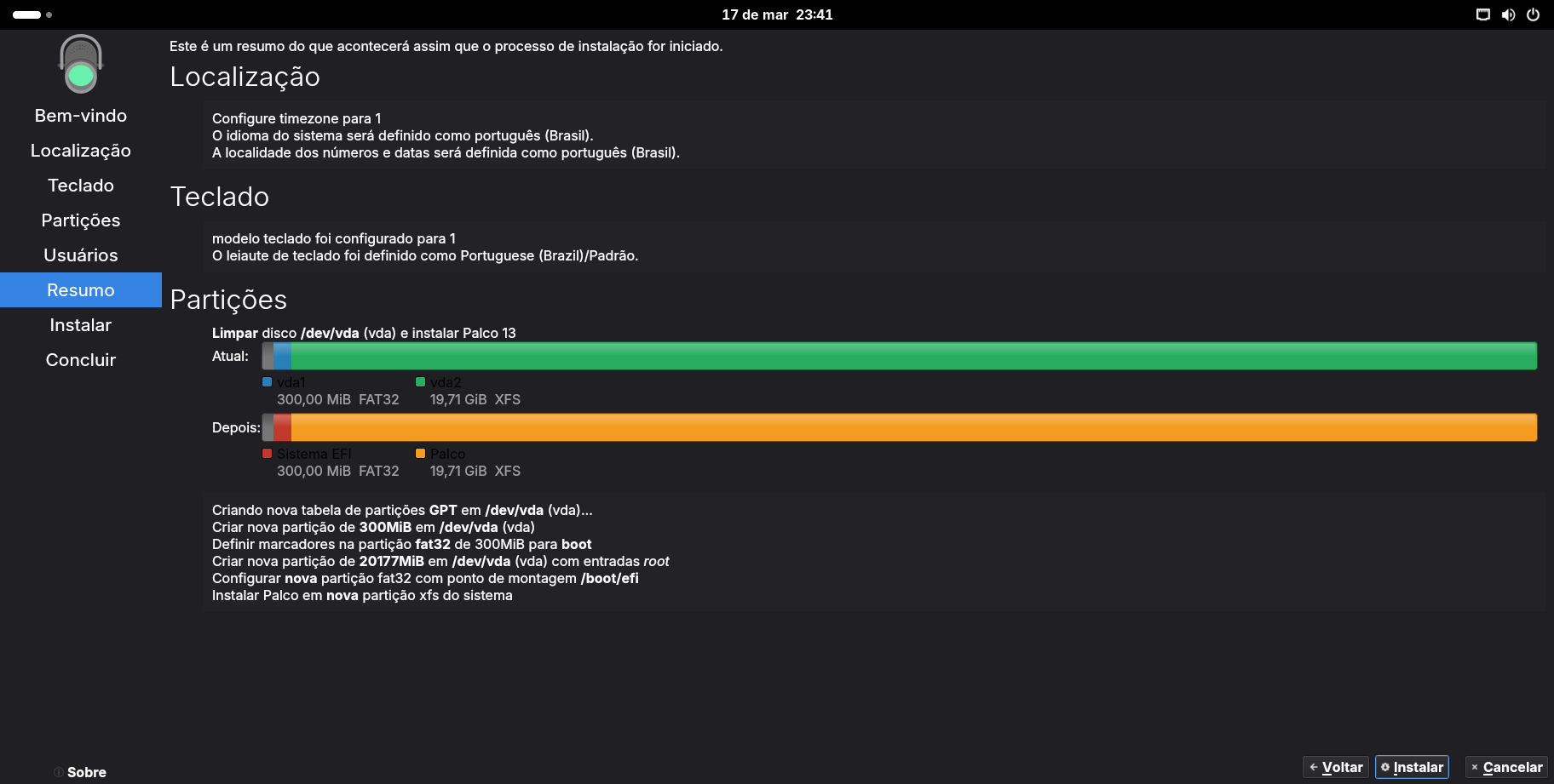 A instalação do Palco é feita através do Calamares, se você já está familiarizado com o processo em outras distribuições, não haverá grandes surpresas.